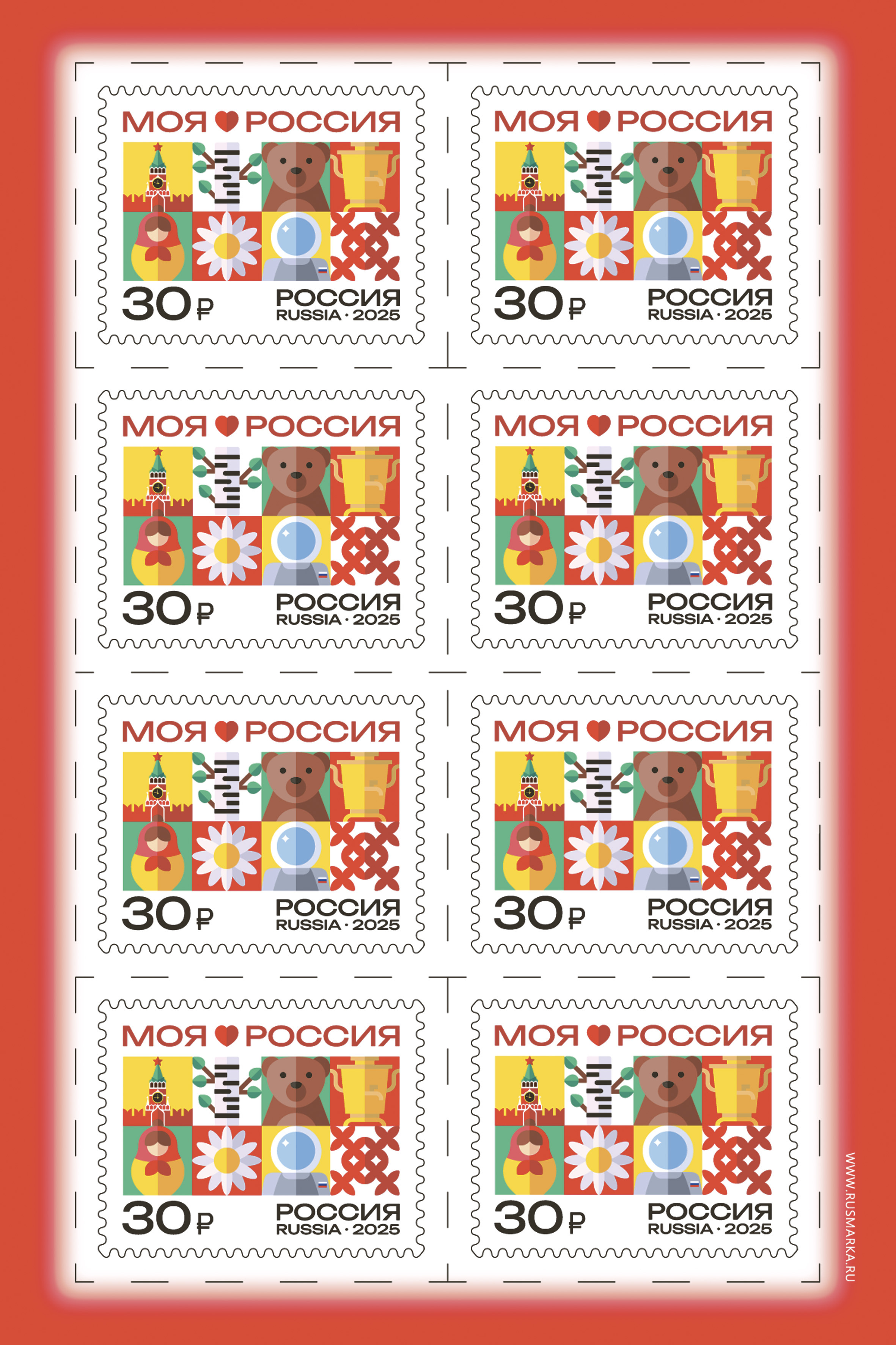 Марка номиналом 30 рублей. Моя Россия. Символы России
