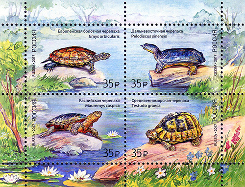 Марка номиналом 35 рублей. Фауна России. Черепахи