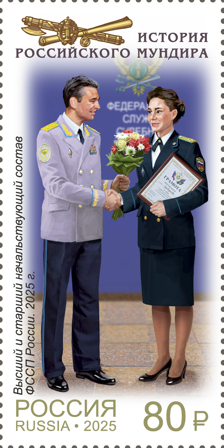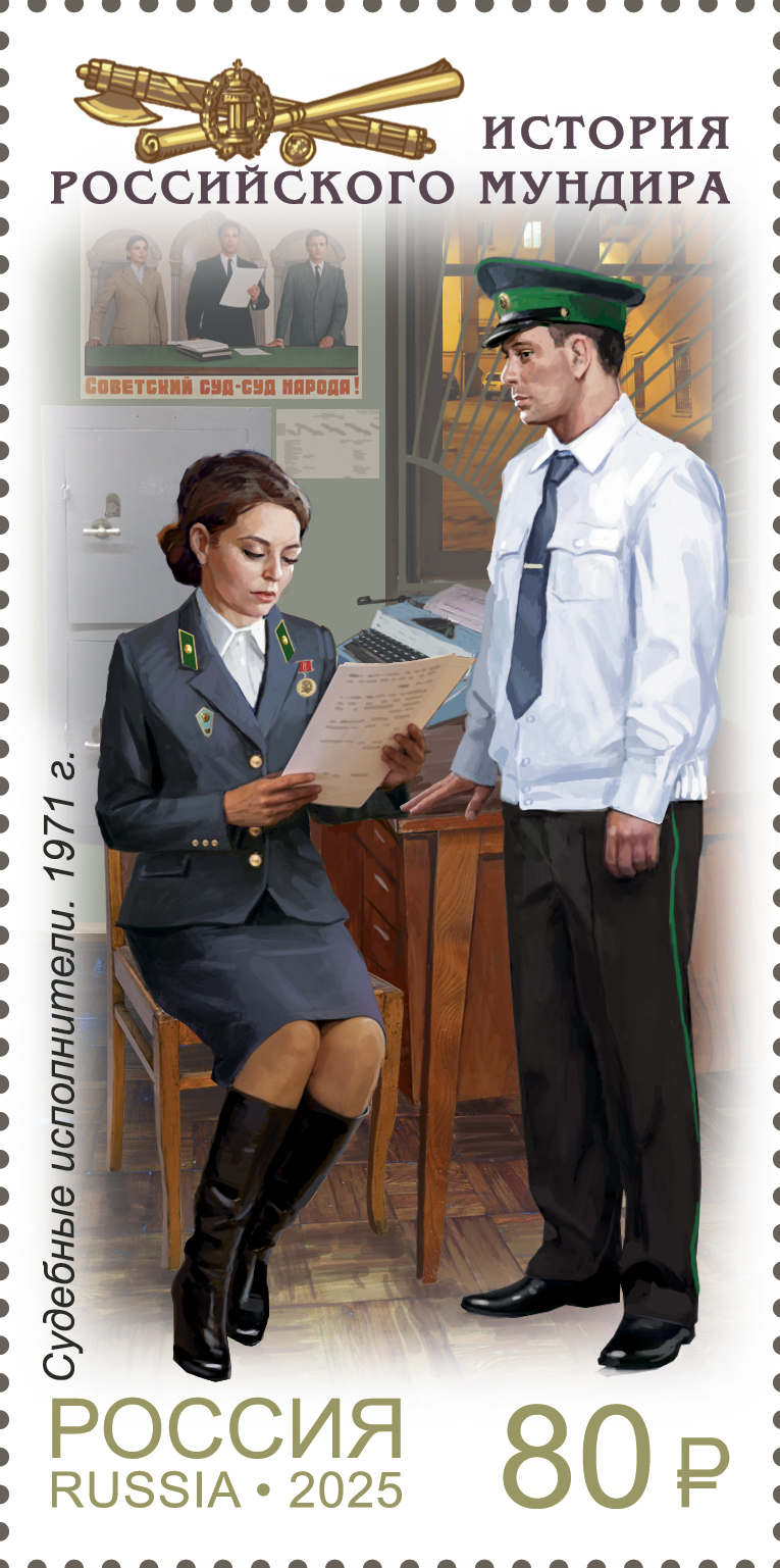 Марка номиналом 80 рублей. Мундиры службы судебных приставов
