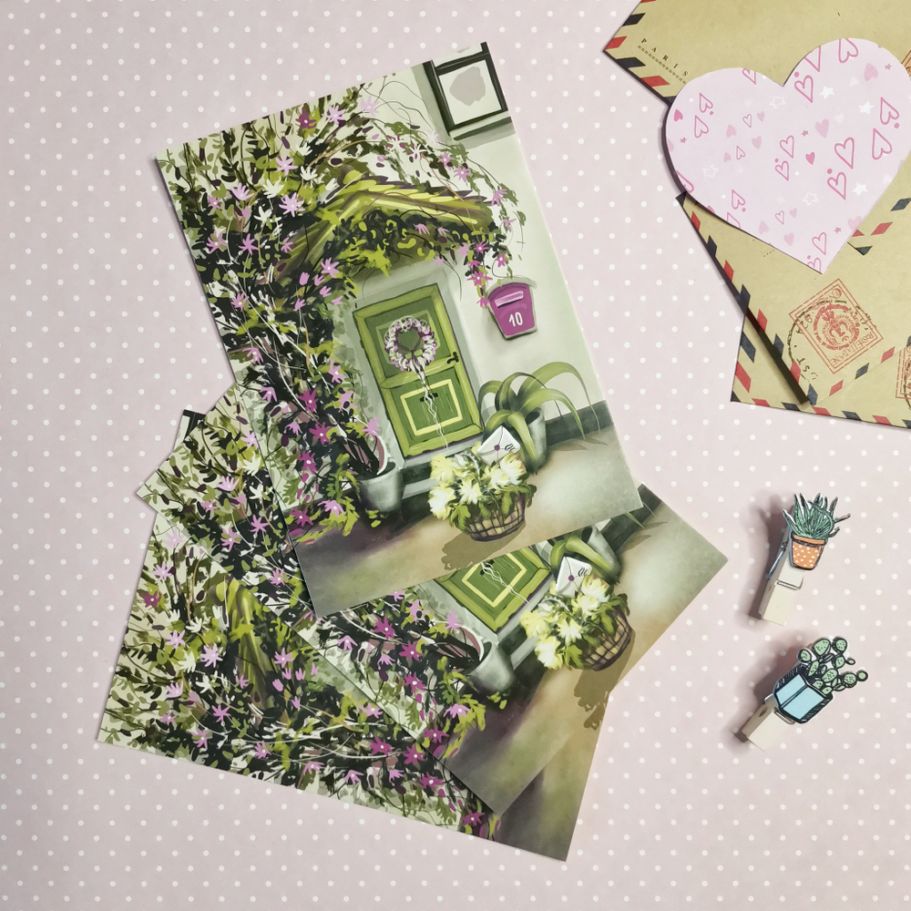 Открытка почтовая. Корзина цветов у порога. (уценка)